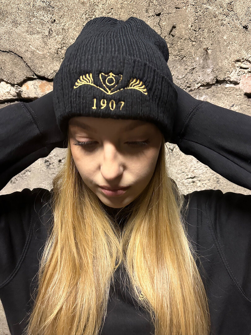 Berretto unisex lavorato a maglia con risvolto e cuciture nella parte superiore.